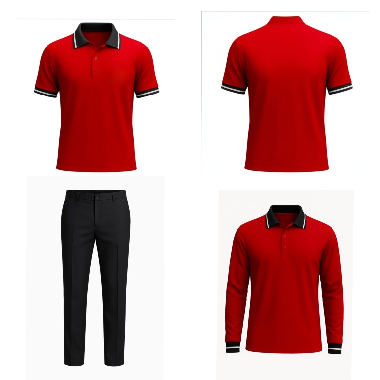 *Yazlık Kıyafet :Kırmızı ve siyah renk kısa kollu polo yaka tişört